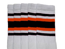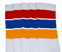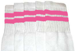 White tube socks with Gold/Baby Pink/Baby Blue stripes