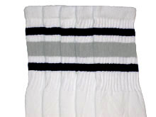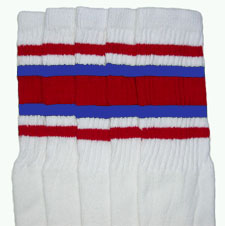Knee high white tube socks with Dark Brown/Baby Blue stripes