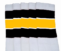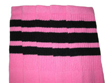 Knee high white tube socks with Bubblegum Pink/Black stripes