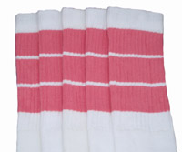 Knee high white tube socks with Baby Pink/Bubblegum Pink stripes