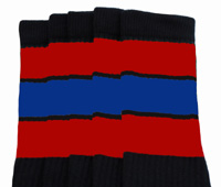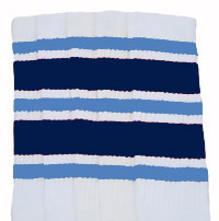Knee high white tube socks with Baby Blue/Navy Blue stripes