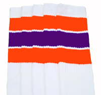 Knee high white tube socks with Hot Pink/Dark Brown stripes