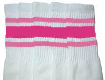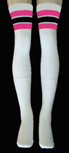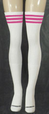 Bubble Gum Pink & Hot Pink Striped Thigh High White Tube Socks