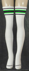 Black/Green/Gold Striped Thigh High White Tube Socks