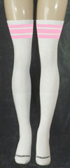 Bubble Gum Pink Striped Thigh High White Tube Socks